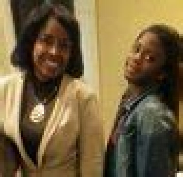 Velma Aiken, the paternal grandmother of Kamiyah, gets a congratulatory hug from a family member on Friday
